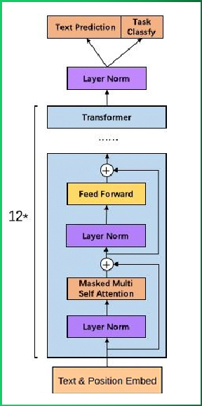 注意: 对比于经典的Transformer架构, 解码器模块采用了6个Decoder Block; GPT的架构中采用了12个Decoder Block.