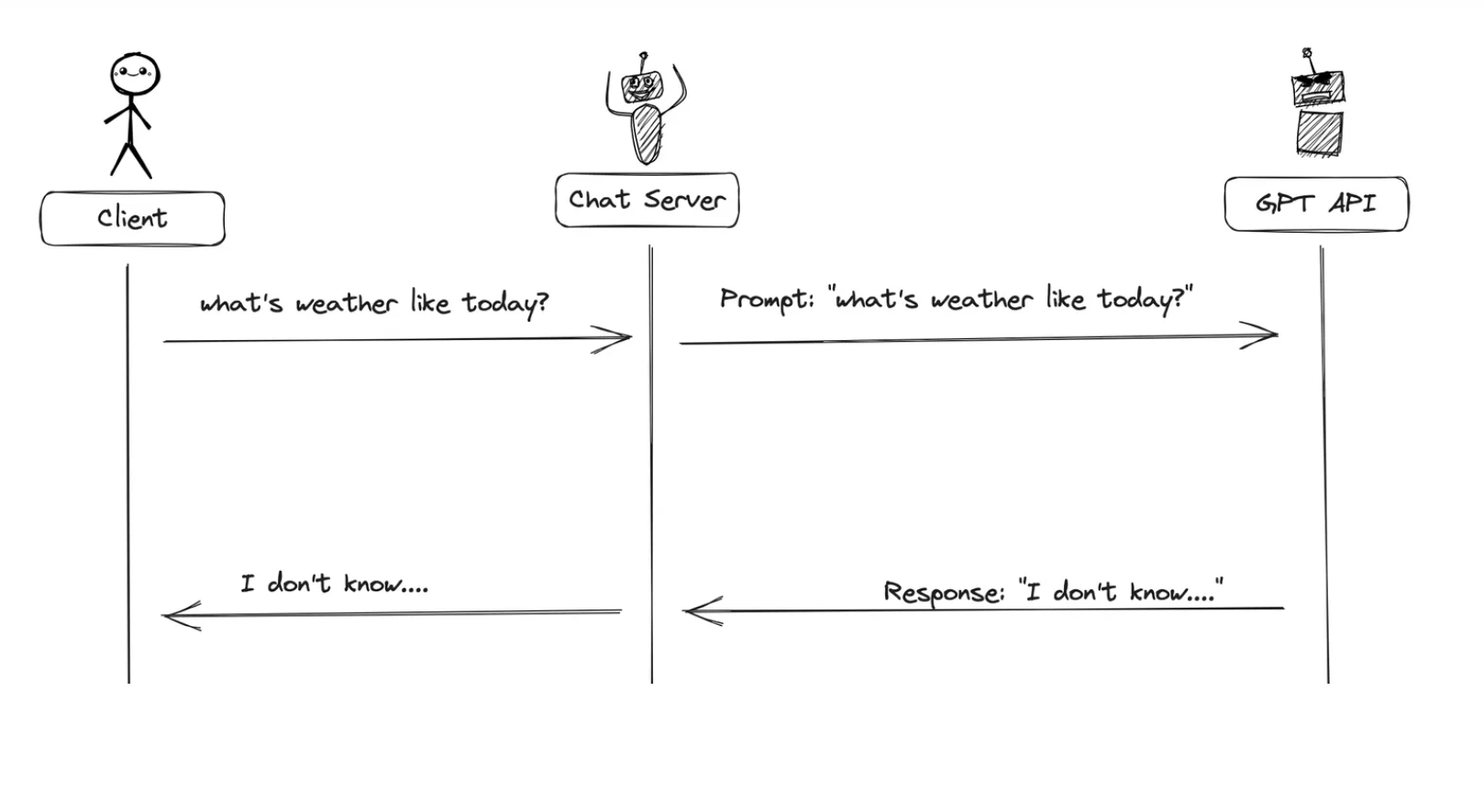 当没有函数调用(funciton-call)时候,我们调用GPT构建AI应用的模式非常简单。