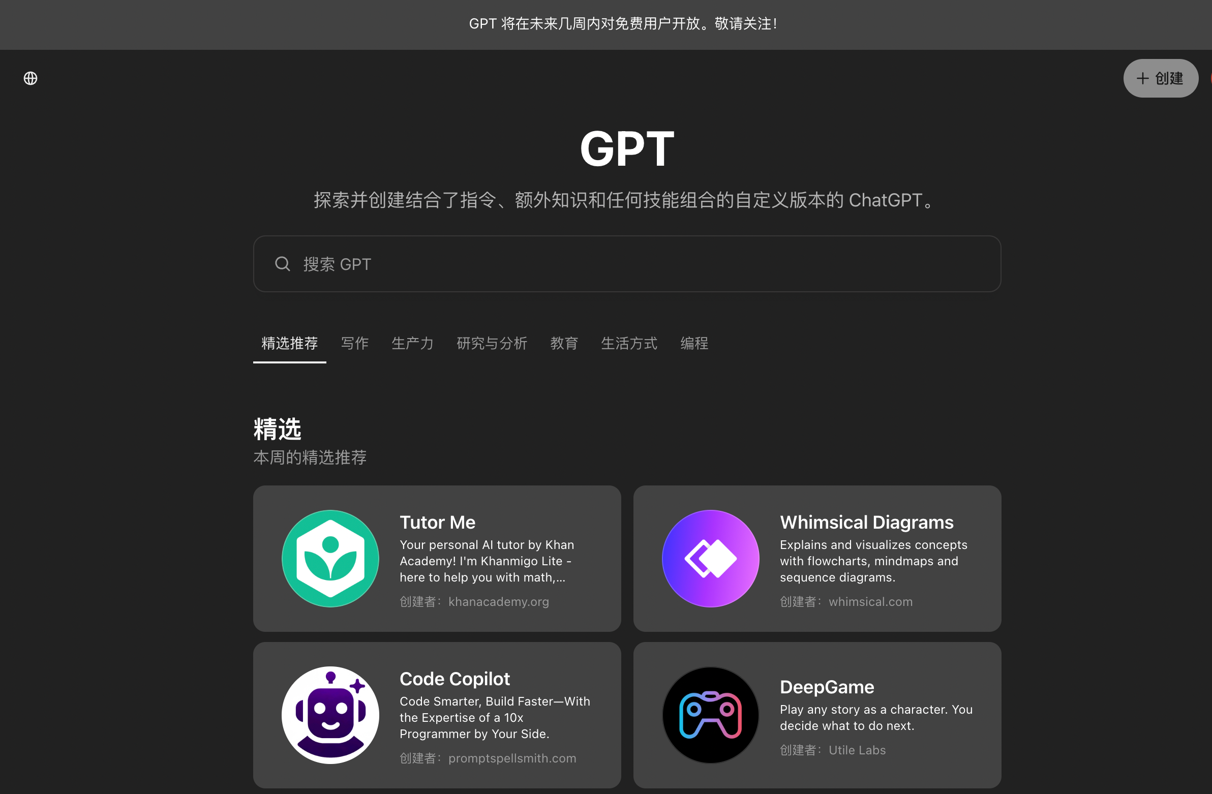 GPT Store访问地址:https://chat.openai.com/gpts,注意需要科学上网,以及当前只针对plus用户开通了使用权限。