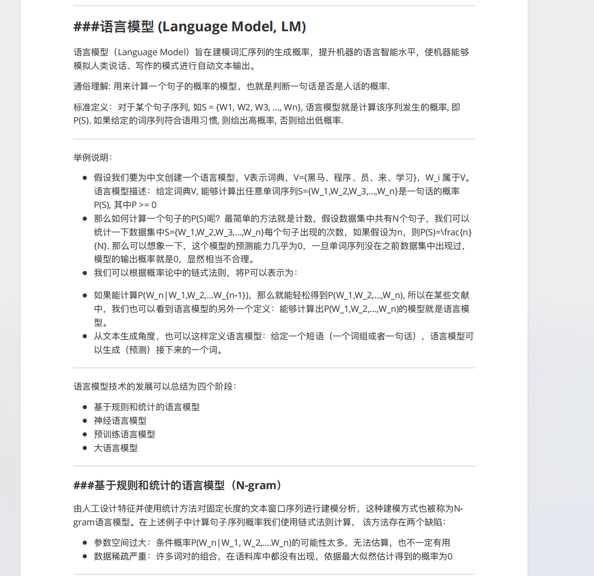 学习笔记文档,通常会针对不同的知识点进行分块介绍,为了保证文档上传到知识库后可以按照不同模块进行拆分,我在每个模块标题前手动添加了###分隔符。如下图所示: