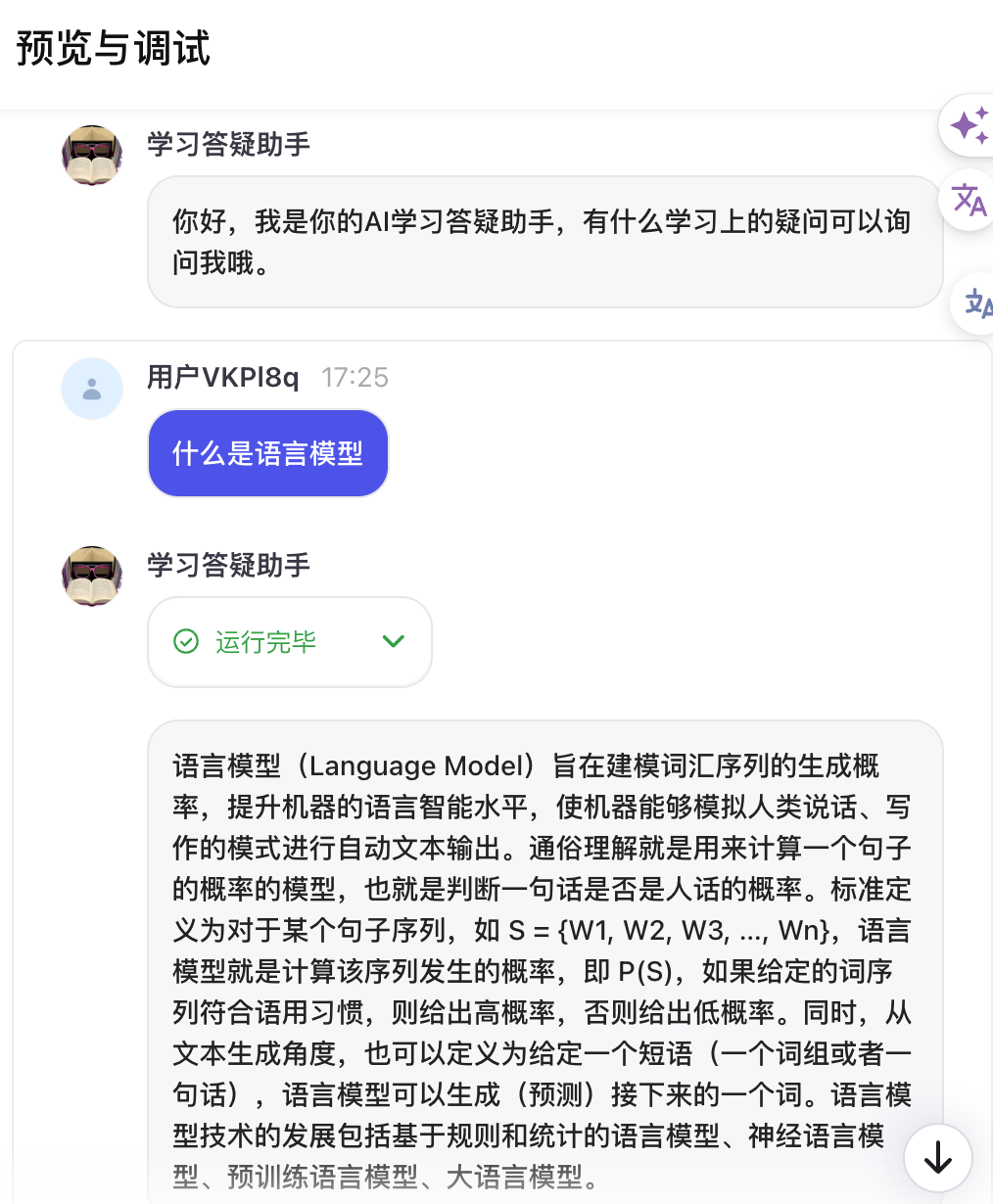 完成知识库内容上传后,就可以搭建学习答疑 Bot 了。