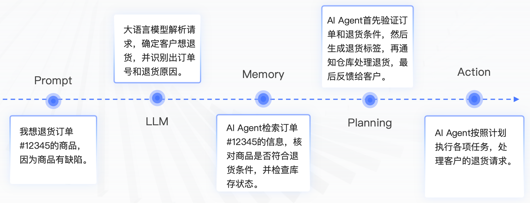 - 以“AI Agent来处理客户的退货请求”为例,进而理解Agent的原理:
