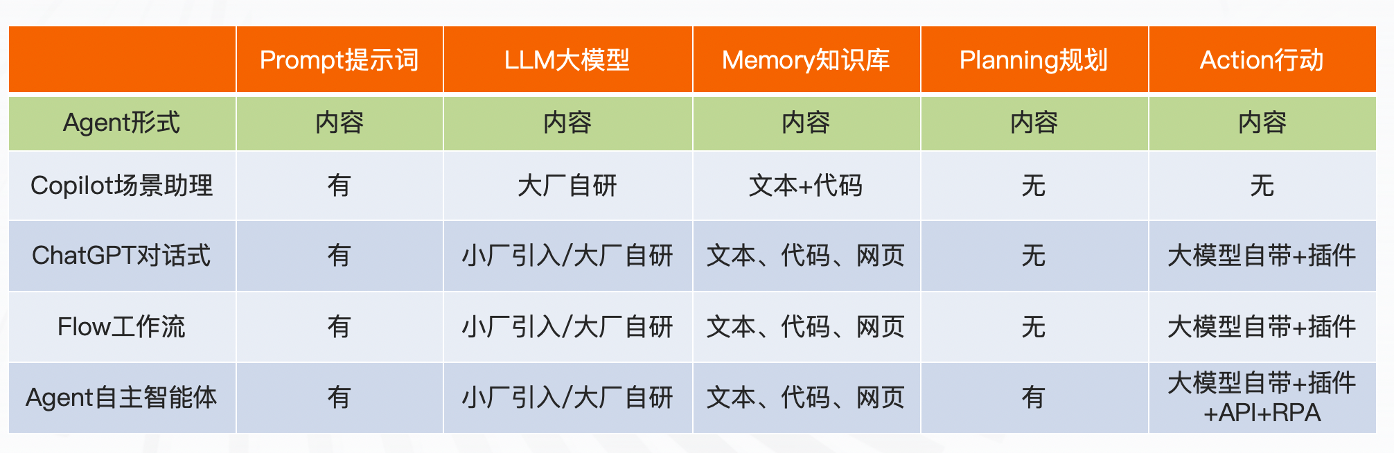 当前基于大模型的AI Agent的呈现形式对比: