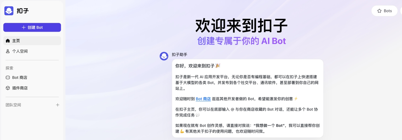 - 用户可以在上面快速搭建基于大模型的问答Bot等AI Agent应用,并发布到社交平台。