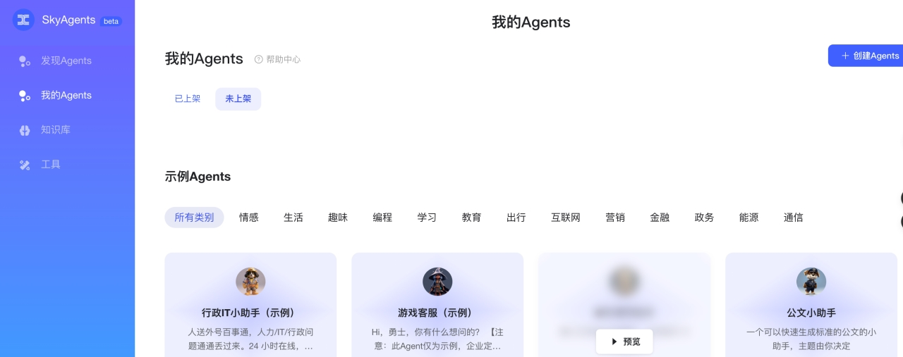 - 访问地址:https://model-platform-skyagents.tiangong.cn/home/agent
